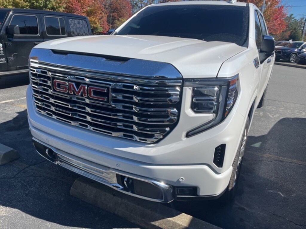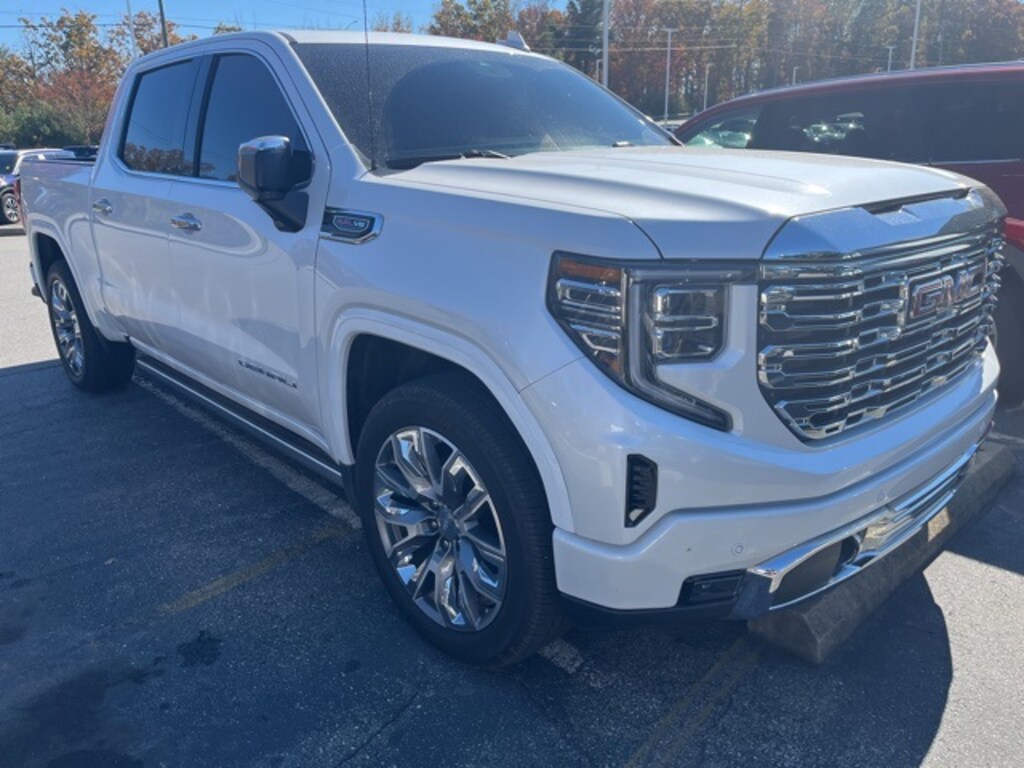 Recent Arrival! 2023 GMC Sierra 1500 Denali White Frost Tricoat 10-Way Power Driver Seat Adjuster w/Lumbar, 10-Way Power Passenger Seat Adjuster w/Lumbar, 120-Volt Bed Mounted Power Outlet, 120-Volt Instrument Panel Power Outlet, 170 Amp Alternator, 2 Charge/Data USB Ports Inside Center Console, 2 Type-C Charge-Only Rear USB Ports, 2 USB Ports, 3.23 Rear Axle Ratio, 4-Wheel Disc Brakes, 7 Speakers, ABS brakes, Adaptive Cruise Control, Adaptive suspension, Air Conditioning, Alloy wheels, AM/FM radio, Apple CarPlay/Android Auto, Auto High-beam Headlights, Auto-dimming door mirrors, Auto-dimming Rear-View mirror, Auto-Locking Rear Differential, Automatic Emergency Braking, Automatic temperature control, Auxiliary External Transmission Oil Cooler, Bed View Camera, Brake assist, Buckle to Drive, Bumpers: body-color, Chrome Header w/Signature Denali Chrome Grille, Chrome Recovery Hooks, Chrome Wheel To Wheel Assist Steps, Color-Keyed Carpeting Floor Covering, Compass, Deep-Tinted Glass, Delay-off headlights, Denali Premium Suspension w/Adaptive Ride Control, Denali Reserve Package, Driver door bin, Driver Memory, Driver vanity mirror, Dual front impact airbags, Dual front side impact airbags, Electric Rear-Window Defogger, Electrical Steering Column Lock, Electronic Stability Control, Emergency communication system: OnStar and GMC connected services capable, Floor-Mounted Center Console, Following Distance Indicator, Forge Perforated Leather Seat Trim, Forward Collision Alert, Front anti-roll bar, Front Bucket Seats, Front Center Armrest, Front dual zone A/C, Front fog lights, Front Pedestrian Braking, Front Prem Floor Liners w/Removable Carpet Insert, Front Rainsensing Wipers, Front reading lights, Front wheel independent suspension, Fully automatic headlights, Garage door transmitter, Genuine wood console insert, Genuine wood dashboard insert, Genuine wood door panel insert, GMC Connected Access Capable, GMC MultiPro Power Steps, HD Surround Vision, Heated 2nd Row Outboard Seats, Heated door mirrors, Heated Driver & Front Outboard Passenger Seating, Heated front seats, Heated rear seats, Heated steering wheel, Heavy-Duty Air Filter, Hill Descent Control, Hitch Guidance, Hitch Guidance w/Hitch View, Illuminated entry, In-Vehicle Trailering App, Integrated Trailer Brake Controller, IntelliBeam Automatic High Beam On/Off, Keyless Open & Start, Lane Keep Assist w/Lane Departure Warning, LED Cargo Area Lighting, Low tire pressure warning, Memory seat, Multicolor 15" Diagonal Head-Up Display, Navigation System, Not Equipped w/Steering Column Lock, Occupant sensing airbag, OnStar & GMC Connected Services Capable, Outside temperature display, Overhead airbag, Overhead console, Panic alarm, Passenger door bin, Passenger vanity mirror, Perimeter Lighting, Power Door Locks, Power door mirrors, Power driver seat, Power Front Passenger Windows w/Express Up/Down, Power Front Windows w/Driver Express Up/Down, Power passenger seat, Power Rake & Telescoping Steering Column, Power Rear Windows w/Express Down, Power Sliding Rear Window w/Rear Defogger, Power steering, Power Sunroof, Power windows, Preferred Equipment Group 5SA, Premium audio system: GMC Infotainment System, Premium Bose 7-Speaker Sound System, Push Button Start, Radio data system, Radio: Premium GMC Infotainment Audio System, Rain sensing wipers, Rear Camera Mirror, Rear Cross Traffic Braking, Rear Pedestrian Detection, Rear Prem Floor Liners w/Removable Carpet Insert, Rear reading lights, Rear seat center armrest, Rear step bumper, Rear Wheelhouse Liners, Rear window defroster, Remote keyless entry, Remote Vehicle Starter System, Safety Alert Seat, Security system, SiriusXM w/360L, Speed control, Speed-sensing steering, Split folding rear seat, Spray-On Pickup Bed Liner w/Denali Logo, Steering Wheel Audio Controls, Steering wheel mounted audio controls, Tachometer, Technology Package, Telescoping steering wheel, Theft Deterrent System (Unauthorized Entry), Tilt steering wheel, Trac