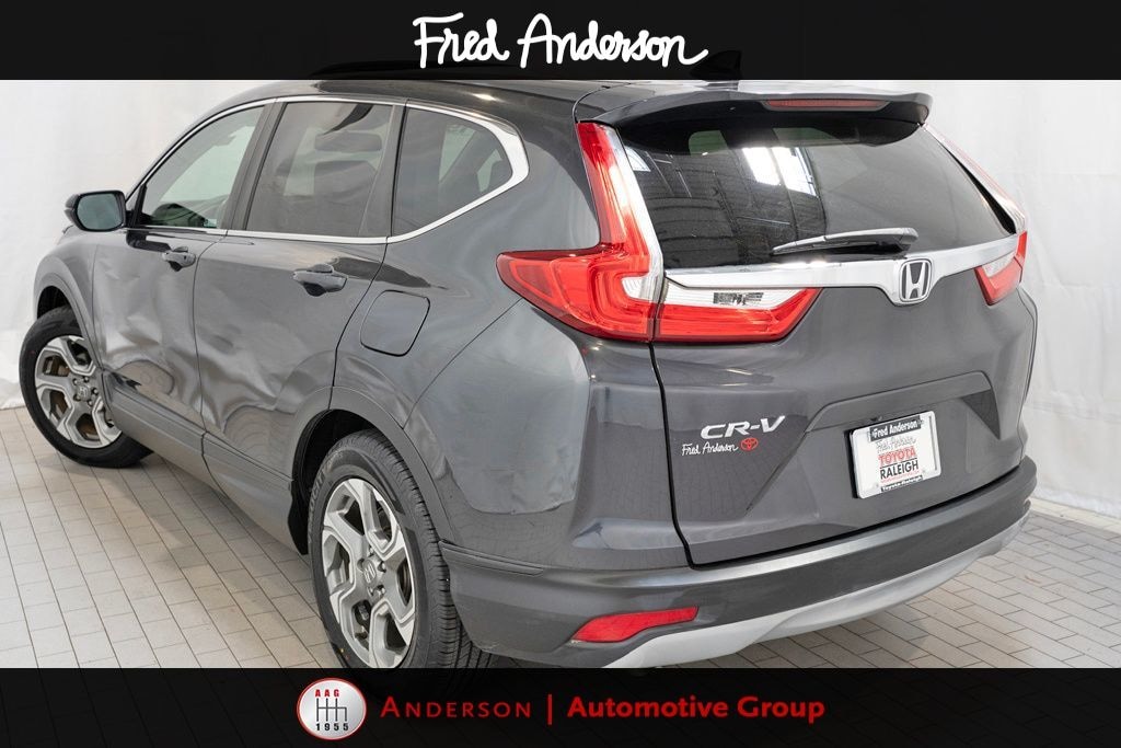 Clean CARFAX. Accident Free Carfax!!, Alloy wheels / Premium Wheels, Bluetooth, Hands-Free, Leather Seats, Local Trade, Star Safety System with Active Breaking Technologies, Keyless Entry, Backup Camera, Sunroof / Panoramic Roof, We will buy your car and pay top dollar for it, even if you don't buy ours!!, USB Port. Odometer is 25038 miles below market average! Check out all these great options 18" Alloy Wheels, 4-Wheel Disc Brakes, 5.64 Axle Ratio, 8 Speakers, ABS brakes, Air Conditioning, Alloy wheels, AM/FM radio: SiriusXM, Apple CarPlay/Android Auto, Auto High-beam Headlights, Auto-dimming Rear-View mirror, Automatic temperature control, Blind Spot Information (BSI) System warning, Brake assist, Bumpers: body-color, Compass, Delay-off headlights, Driver door bin, Driver vanity mirror, Dual front impact airbags, Dual front side impact airbags, Electronic Stability Control, Exterior Parking Camera Rear, Forward collision: Collision Mitigation Braking System (CMBS) + FCW mitigation, Four wheel independent suspension, Front anti-roll bar, Front Bucket Seats, Front Center Armrest, Front dual zone A/C, Front fog lights, Front reading lights, Fully automatic headlights, Garage door transmitter: HomeLink, Heated door mirrors, Heated Front Bucket Seats, Heated front seats, Illuminated entry, Lane departure: Lane Keeping Assist System (LKAS) active, Leather Seat Trim, Leather Shift Knob, Low tire pressure warning, Memory seat, Occupant sensing airbag, Outside temperature display, Overhead airbag, Overhead console, Panic alarm, Passenger door bin, Passenger vanity mirror, Power door mirrors, Power driver seat, Power Liftgate, Power moonroof, Power passenger seat, Power steering, Power windows, Radio data system, Radio: AM/FM/SiriusXM Audio System, Rear anti-roll bar, Rear seat center armrest, Rear window defroster, Rear window wiper, Remote keyless entry, Security system, Speed control, Speed-sensing steering, Speed-Sensitive Wipers, Split folding rear seat, Spoiler, Steering wheel mounted audio controls, Tachometer, Telescoping steering wheel, Tilt steering wheel, Traction control, Trip computer, Turn signal indicator mirrors, and Variably intermittent wipersStop by and test drive today. Let us show you how affordable we can make it. Remember, we always give you more for your trade and we will buy your vehicle even if you don't buy one from us. See online @ www.FredAndersonToyota.com or see in person @ Fred Anderson Toyota 9101 Glenwood Ave. Raleigh NC, 27617. 2019 Honda CR-V EX-L FWD Gunmetal Metallic CVT