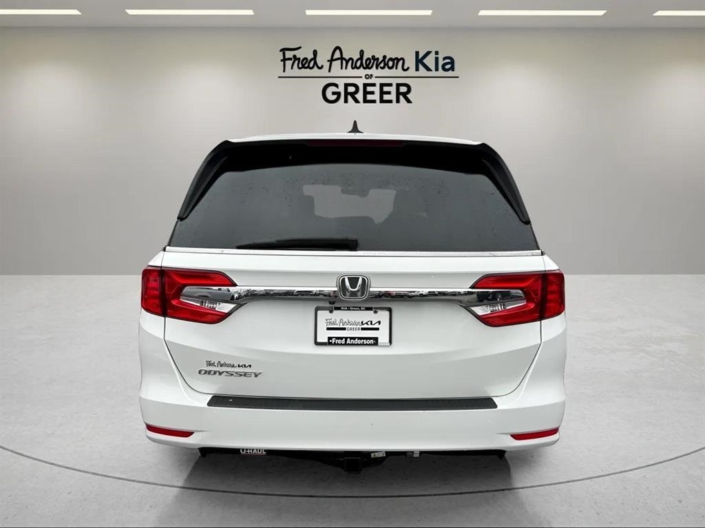 CARFAX One-Owner. 2020 Honda Odyssey EX-L White 3.61 Axle Ratio, 3rd row seats: split-bench, 4-Wheel Disc Brakes, 7 Speakers, A/V remote: CabinControl, ABS brakes, Air Conditioning, Alloy wheels, AM/FM radio: SiriusXM, Anti-whiplash front head restraints, Apple CarPlay/Android Auto, Auto High-beam Headlights, Auto-dimming Rear-View mirror, Automatic temperature control, Blind Spot Information (BSI) System warning, Brake assist, Bumpers: body-color, Delay-off headlights, Driver door bin, Driver vanity mirror, Driver's Seat Mounted Armrest, Dual front impact airbags, Dual front side impact airbags, Electronic Stability Control, Exterior Parking Camera Rear, Forward collision: Collision Mitigation Braking System (CMBS) + FCW mitigation, Four wheel independent suspension, Front anti-roll bar, Front Bucket Seats, Front dual zone A/C, Front fog lights, Front reading lights, Fully automatic headlights, Garage door transmitter: HomeLink, Heated door mirrors, Heated Front Bucket Seats, Heated front seats, Illuminated entry, Knee airbag, Lane departure: Lane Keeping Assist System (LKAS) active, Leather Seat Trim, Leather steering wheel, Low tire pressure warning, Memory seat, Occupant sensing airbag, Outside temperature display, Overhead airbag, Overhead console, Panic alarm, Passenger door bin, Passenger seat mounted armrest, Passenger vanity mirror, Power door mirrors, Power driver seat, Power Liftgate, Power moonroof, Power passenger seat, Power steering, Power windows, Radio data system, Radio: 160-Watt AM/FM/HD/SiriusXM Audio System, Rear air conditioning, Rear anti-roll bar, Rear reading lights, Rear seat center armrest, Rear window defroster, Rear window wiper, Reclining 3rd row seat, Remote keyless entry, Security system, Speed control, Speed-sensing steering, Speed-Sensitive Wipers, Split folding rear seat, Spoiler, Steering wheel mounted audio controls, Tachometer, Telescoping steering wheel, Tilt steering wheel, Traction control, Trip computer, Turn signal indicator mirrors, Variably intermittent wipers, Wheels: 18" Silver-Painted Alloy.