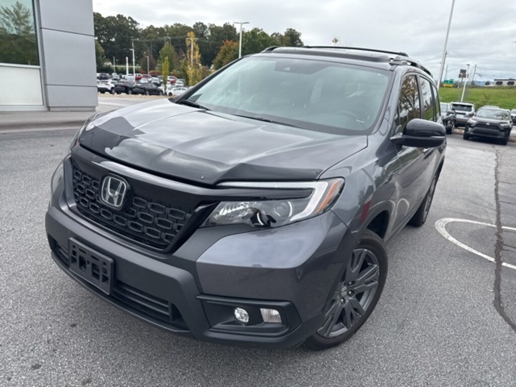 Recent Arrival! 2021 Honda Passport EX-L Modern Steel Metallic 4-Wheel Disc Brakes, 4.334 Axle Ratio, 7 Speakers, A/V remote: CabinControl, ABS brakes, Air Conditioning, Alloy wheels, AM/FM radio: SiriusXM, Apple CarPlay/Android Auto, Auto High-beam Headlights, Auto-dimming Rear-View mirror, Automatic temperature control, Blind Spot Information (BSI) System warning, Brake assist, Bumpers: body-color, Delay-off headlights, Driver door bin, Driver vanity mirror, Driver's Seat Mounted Armrest, Dual front impact airbags, Dual front side impact airbags, Electronic Stability Control, Emergency communication system: HondaLink Assist, Exterior Parking Camera Rear, Forward collision: Collision Mitigation Braking System (CMBS) + FCW mitigation, Four wheel independent suspension, Front anti-roll bar, Front Bucket Seats, Front Center Armrest, Front dual zone A/C, Front fog lights, Front reading lights, Fully automatic headlights, Garage door transmitter: HomeLink, Heated door mirrors, Heated Front Bucket Seats, Heated front seats, Illuminated entry, Lane departure: Lane Keeping Assist System (LKAS) active, Leather-Trimmed Seats, Low tire pressure warning, Memory seat, Occupant sensing airbag, Outside temperature display, Overhead airbag, Overhead console, Panic alarm, Passenger door bin, Passenger seat mounted armrest, Passenger vanity mirror, Power door mirrors, Power driver seat, Power Liftgate, Power moonroof, Power passenger seat, Power steering, Power windows, Radio data system, Radio: 215-Watt Audio System w/7 Speakers, Rear air conditioning, Rear anti-roll bar, Rear reading lights, Rear seat center armrest, Rear window defroster, Rear window wiper, Remote keyless entry, Security system, Speed control, Speed-sensing steering, Split folding rear seat, Spoiler, Steering wheel mounted audio controls, Tachometer, Telescoping steering wheel, Tilt steering wheel, Traction control, Trip computer, Turn signal indicator mirrors, Variably intermittent wipers, Wheels: 20" Split-Spoke Pewter Gray Alloy.
