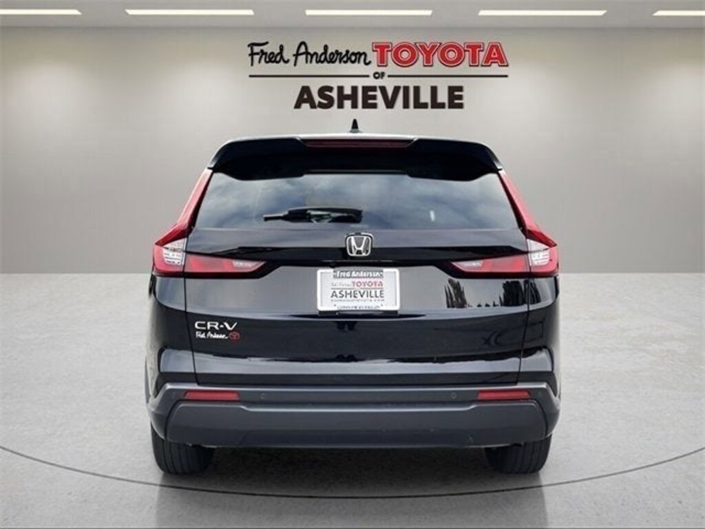 2023 Honda CR-V EX-L Crystal Black Pearl 4-Wheel Disc Brakes, 5.64 Axle Ratio, 8 Speakers, ABS brakes, Adaptive Cruise Control: Adaptive Cruise Control (ACC) with Low-Speed Follow, Air Conditioning, Alloy wheels, AM/FM radio: SiriusXM, Auto High-beam Headlights, Auto-dimming Rear-View mirror, Automatic temperature control, Brake assist, Bumpers: body-color, Compass, Delay-off headlights, Driver door bin, Driver vanity mirror, Dual front impact airbags, Dual front side impact airbags, Electronic Stability Control, Exterior Parking Camera Rear, Four wheel independent suspension, Front anti-roll bar, Front Bucket Seats, Front Center Armrest, Front dual zone A/C, Front reading lights, Fully automatic headlights, Heated door mirrors, Heated Front Bucket Seats, Heated front seats, Illuminated entry, Knee airbag, Leather Seat Trim, Leather Shift Knob, Leather steering wheel, Low tire pressure warning, Memory seat, Occupant sensing airbag, Outside temperature display, Overhead airbag, Overhead console, Panic alarm, Passenger door bin, Passenger vanity mirror, Power door mirrors, Power driver seat, Power Liftgate, Power moonroof, Power passenger seat, Power steering, Power windows, Radio data system, Radio: 320-Watt AM/FM/HD/SiriusXM Audio System, Rear anti-roll bar, Rear reading lights, Rear seat center armrest, Rear side impact airbag, Rear window defroster, Rear window wiper, Remote keyless entry, Security system, Speed control, Speed-sensing steering, Speed-Sensitive Wipers, Split folding rear seat, Spoiler, Steering wheel mounted audio controls, Tachometer, Telescoping steering wheel, Tilt steering wheel, Traction control, Trip computer, Turn signal indicator mirrors, Variably intermittent wipers, Wheels: 18" Sparkle Silver Metallic, Wireless Apple CarPlay/Wireless Android Auto.