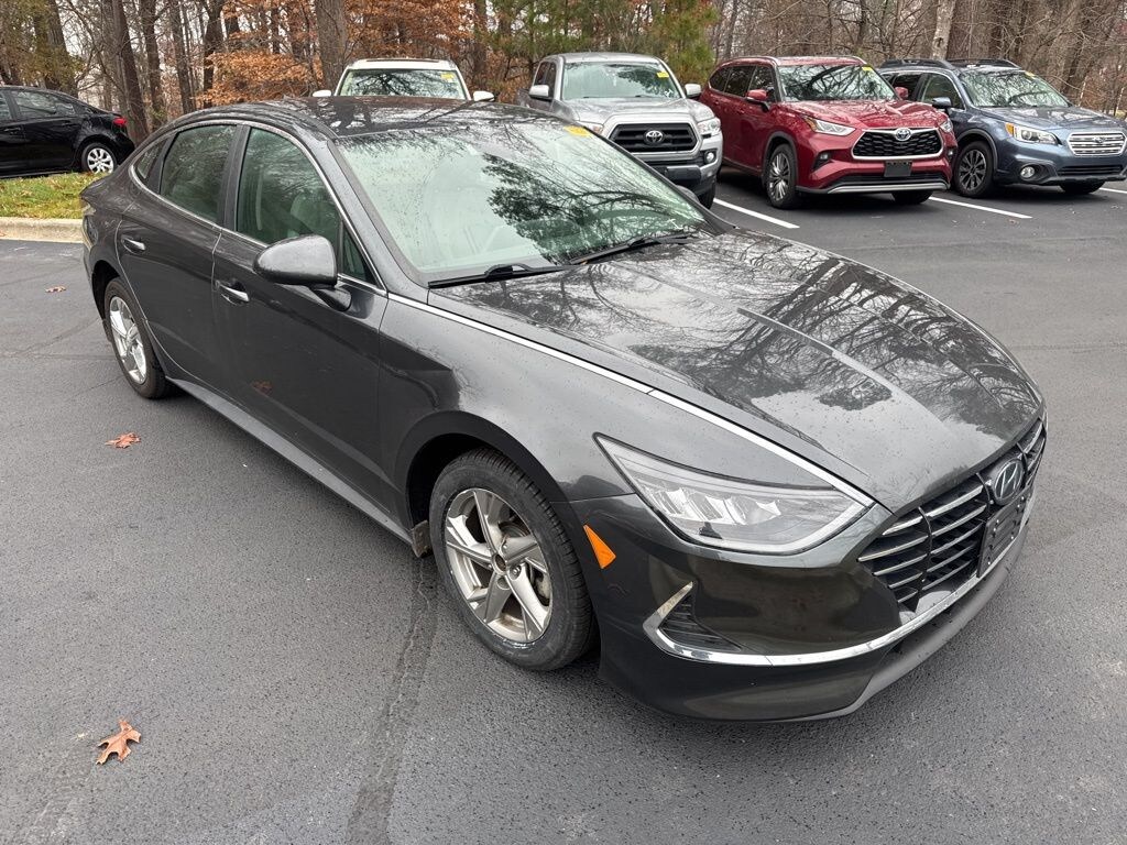 Still Under Factory Powertrain Warranty!!, Still Under Factory Warranty!!, Bluetooth, Hands-Free, Keyless Entry, Backup Camera, We will buy your car and pay top dollar for it, even if you don't buy ours!!, Dark Gray Cloth. Odometer is 9850 miles below market average! Check out all these great options Option Group 01, Dark Gray Cloth, 16 x 6.5J Aluminum Alloy Wheels, 4-Wheel Disc Brakes, 6 Speakers, ABS brakes, Air Conditioning, Alloy wheels, AM/FM radio, Apple CarPlay & Android Auto, Auto High-beam Headlights, Brake assist, Bumpers: body-color, Carpeted Floor Mats, Delay-off headlights, Driver door bin, Driver vanity mirror, Dual front impact airbags, Dual front side impact airbags, Electronic Stability Control, Exterior Parking Camera Rear, Four wheel independent suspension, Front anti-roll bar, Front Bucket Seats, Front Center Armrest, Front reading lights, Fully automatic headlights, Illuminated entry, Knee airbag, Low tire pressure warning, Mud Guards, Occupant sensing airbag, Outside temperature display, Overhead airbag, Overhead console, Panic alarm, Passenger door bin, Passenger vanity mirror, Power door mirrors, Power steering, Power windows, Premium Cloth Seating Surfaces, Radio data system, Radio: AM/FM/MP3/HD Display Audio, Rear anti-roll bar, Rear Bumper Applique, Rear side impact airbag, Rear window defroster, Remote keyless entry, Security system, Speed control, Speed-sensing steering, Speed-Sensitive Wipers, Split folding rear seat, Steering wheel mounted audio controls, Tachometer, Telescoping steering wheel, Tilt steering wheel, Traction control, Trip computer, Variably intermittent wipers, and Wheel LocksStop by and test drive today. Let us show you how affordable we can make it. Remember, we always give you more for your trade and we will buy your vehicle even if you don't buy one from us. See online @ www.FredAndersonToyota.com or see in person @ Fred Anderson Toyota 9101 Glenwood Ave. Raleigh NC, 27617. Recent Arrival! 2021 Hyundai Sonata SE FWD Portofino Gray 8-Speed Automatic with Overdrive