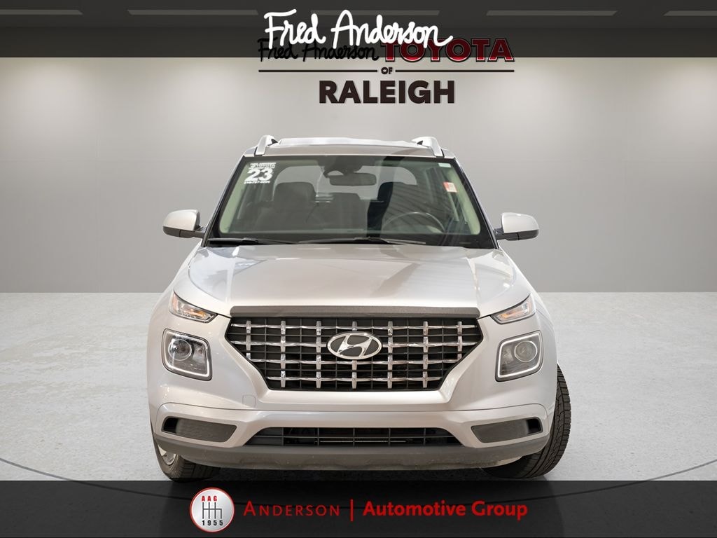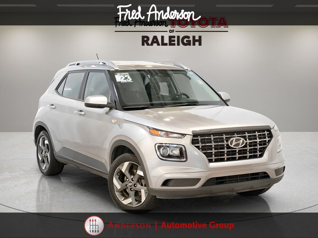 CARFAX One-Owner. Clean CARFAX. Still Under Factory Powertrain Warranty!!, Only One Owner and Accident Free Carfax!!, Alloy wheels / Premium Wheels, Bluetooth, Hands-Free, Star Safety System with Active Breaking Technologies, Keyless Entry, Keyless Start, Backup Camera, We will buy your car and pay top dollar for it, even if you don't buy ours!!, USB Port. Odometer is 3804 miles below market average! Check out all these great options Option Group 01, 4-Wheel Disc Brakes, 6 Speakers, 6.052 Axle Ratio, 6.5J x 17" Alloy Wheels, ABS brakes, Air Conditioning, Alloy wheels, AM/FM radio, Apple CarPlay & Android Auto, Auto High-beam Headlights, Automatic temperature control, Brake assist, Bumpers: body-color, Cargo Tray, Carpeted Floor Mats, Cloth Seat Trim, Delay-off headlights, Driver door bin, Driver vanity mirror, Dual front impact airbags, Dual front side impact airbags, Electronic Stability Control, First Aid Kit, Front anti-roll bar, Front Bucket Seats, Front Center Armrest, Front reading lights, Front wheel independent suspension, Fully automatic headlights, Illuminated entry, Leather Shift Knob, Leather steering wheel, Low tire pressure warning, Occupant sensing airbag, Outside temperature display, Overhead airbag, Overhead console, Panic alarm, Passenger door bin, Passenger vanity mirror, Power door mirrors, Power moonroof, Power steering, Power windows, Radio: AM/FM/HD Display Audio, Rear window defroster, Rear window wiper, Remote keyless entry, Roof rack: rails only, Security system, Speed control, Speed-sensing steering, Split folding rear seat, Spoiler, Steering wheel mounted audio controls, Tachometer, Telescoping steering wheel, Tilt steering wheel, Traction control, Trip computer, and Variably intermittent wipersStop by and test drive today. Let us show you how affordable we can make it. Remember, we always give you more for your trade and we will buy your vehicle even if you don't buy one from us. See online @ www.FredAndersonToyota.com or see in person @ Fred Anderson Toyota 9101 Glenwood Ave. Raleigh NC, 27617. 2023 Hyundai Venue SEL FWD Shimmering Silver CVT