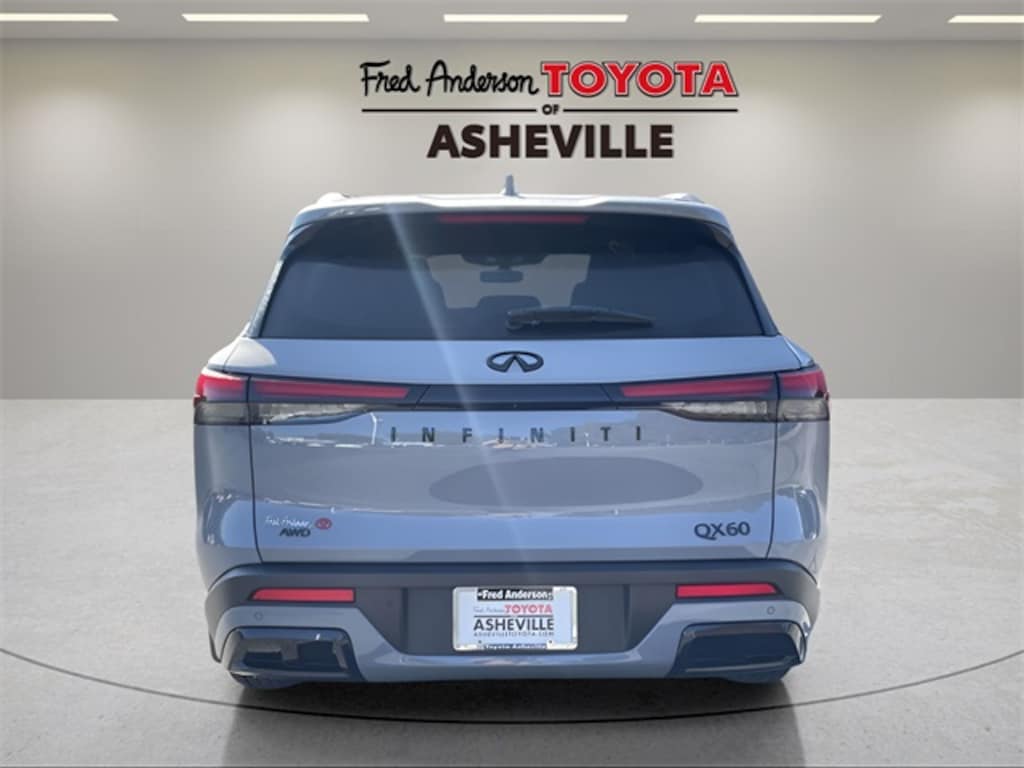 CARFAX One-Owner. Clean CARFAX. 2025 INFINITI QX60 LUXE Harbor Gray 3rd row seats: bench, 4-Wheel Disc Brakes, ABS brakes, Air Conditioning, Alloy wheels, AM/FM radio: SiriusXM, Auto High-beam Headlights, Auto tilt-away steering wheel, Auto-dimming Rear-View mirror, Automatic temperature control, Brake assist, Delay-off headlights, Driver door bin, Driver vanity mirror, Dual front impact airbags, Dual front side impact airbags, Electronic Stability Control, Exterior Parking Camera Rear, Four wheel independent suspension, Front anti-roll bar, Front Bucket Seats, Front dual zone A/C, Front reading lights, Fully automatic headlights, Garage door transmitter: HomeLink, Heated door mirrors, Heated front seats, Heated rear seats, Heated steering wheel, Illuminated entry, Knee airbag, Leather Shift Knob, Leather steering wheel, Leather-Appointed Seating Surfaces, Low tire pressure warning, Memory seat, Navigation system: INFINITI InTouch Navigation, Occupant sensing airbag, Outside temperature display, Overhead airbag, Overhead console, Panic alarm, Passenger door bin, Passenger vanity mirror, Power door mirrors, Power driver seat, Power Liftgate, Power moonroof, Power passenger seat, Power steering, Power windows, Radio data system, Rain sensing wipers, Rear air conditioning, Rear anti-roll bar, Rear reading lights, Rear side impact airbag, Rear window defroster, Rear window wiper, Reclining 3rd row seat, Remote keyless entry, Security system, Speed control, Speed-sensing steering, Speed-Sensitive Wipers, Split folding rear seat, Spoiler, Steering wheel memory, Steering wheel mounted audio controls, Tachometer, Telescoping steering wheel, Tilt steering wheel, Traction control, Trip computer, Turn signal indicator mirrors, Variably intermittent wipers.