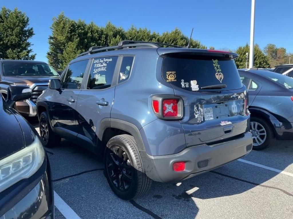 Check out all these great Altitude Package, Quick Order Package 22M Altitude (Ambient LED Interior Lighting, Automatic Headlamps, Black Side Roof Rails, Cluster 7" TFT Color Display, Cornering Front Fog Lamps, Deluxe Cloth High-Back Bucket Seats, Exterior Mirrors w/Supplemental Signals, Gloss Black Exterior Accents, Gloss Black Grille-Gloss Black Xhairs, Keyless Entry w/Panic Alarm, Premium-Wrapped Steering Wheel, Remote Start System, Upgraded Exterior Color Mirror, and Wheels: 18" x 8.0" Gloss Black), 17" x 7.0" Aluminum Wheels, 3.734 Final Drive Ratio, 4-Wheel Disc Brakes, 6 Speakers, ABS brakes, Air Conditioning, Alloy wheels, AM/FM radio: SiriusXM, Anti-whiplash front head restraints, Apple CarPlay/Android Auto, Automatic temperature control, Brake assist, Cloth Bucket Seats, Compass, Delay-off headlights, Driver door bin, Driver vanity mirror, Dual front impact airbags, Dual front side impact airbags, Electronic Stability Control, Emergency communication system: SiriusXM Guardian, Four wheel independent suspension, Front anti-roll bar, Front Bucket Seats, Front Center Armrest, Front dual zone A/C, Front reading lights, Heated door mirrors, Illuminated entry, Knee airbag, Low tire pressure warning, Navigation System, Normal Duty Suspension, Occupant sensing airbag, Outside temperature display, Overhead airbag, ParkView Rear Back-Up Camera, Passenger door bin, Passenger vanity mirror, Power door mirrors, Power steering, Power windows, Radio data system, Radio: Uconnect 4C Nav w/8.4" Display, Rear anti-roll bar, Rear window defroster, Rear window wiper, Remote keyless entry, Roof rack: rails only, Security system, Speed control, Split folding rear seat, Spoiler, Steering wheel mounted audio controls, Tachometer, Telescoping steering wheel, Tilt steering wheel, Traction control, Trip computer, Variably intermittent wipers, and Voltmeter. Recent Arrival! Slate Blue Pearlcoat 2023 Jeep Renegade Altitude CARFAX One-Owner. Clean CARFAX. Odometer is 2954 miles below market average! **ONE-OWNER**, **NO ACCIDENT HISTORY ON CARFAX**, **LOCAL TRADE**, **GREAT CARFAX SERVICE HISTORY**. 23/29 City/Highway MPG