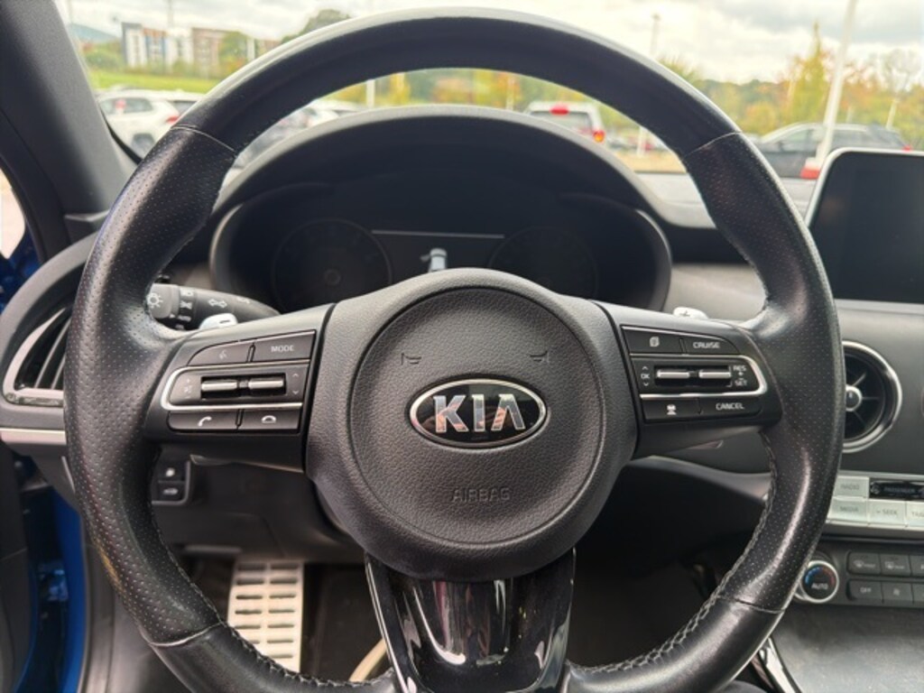 Recent Arrival! 2019 Kia Stinger GT2 Micro Blue 15 Speakers, 4-Wheel Disc Brakes, ABS brakes, Air Conditioning, Alloy wheels, AM/FM radio: SiriusXM, Anti-whiplash front head restraints, Apple CarPlay & Android Auto, Auto High-beam Headlights, Auto tilt-away steering wheel, Auto-dimming door mirrors, Auto-dimming Rear-View mirror, Automatic temperature control, Brake assist, Bumpers: body-color, Cargo Mat, Compass, Delay-off headlights, Driver door bin, Driver vanity mirror, Dual front impact airbags, Dual front side impact airbags, Electronic Stability Control, Emergency communication system: UVO eServices, Four wheel independent suspension, Front anti-roll bar, Front Bucket Seats, Front Center Armrest, Front dual zone A/C, Front reading lights, Fully automatic headlights, Garage door transmitter: HomeLink, harman/kardon® Speakers, Heads-Up Display, Heated & Ventilated Front Bucket Seats, Heated door mirrors, Heated front seats, Heated rear seats, Illuminated entry, Knee airbag, Low tire pressure warning, Memory seat, Nappa Leather Seat Trim, Navigation System, Occupant sensing airbag, Outside temperature display, Overhead airbag, Overhead console, Panic alarm, Passenger door bin, Passenger vanity mirror, Power door mirrors, Power driver seat, Power Liftgate, Power moonroof, Power passenger seat, Power steering, Power windows, Radio: AM/FM/MP3/HD/SiriusXM harmon/kardon Audio, Rain sensing wipers, Rear air conditioning, Rear anti-roll bar, Rear reading lights, Rear seat center armrest, Rear window defroster, Remote keyless entry, Security system, Speed control, Speed-sensing steering, Speed-Sensitive Wipers, Split folding rear seat, Spoiler, Sport steering wheel, Steering wheel memory, Steering wheel mounted audio controls, Tachometer, Telescoping steering wheel, Tilt steering wheel, Traction control, Trip computer, Turn signal indicator mirrors, Variably intermittent wipers, Ventilated front seats, Wheels: 19" x 8J Front & 19" x 8.5J Rear Alloy.