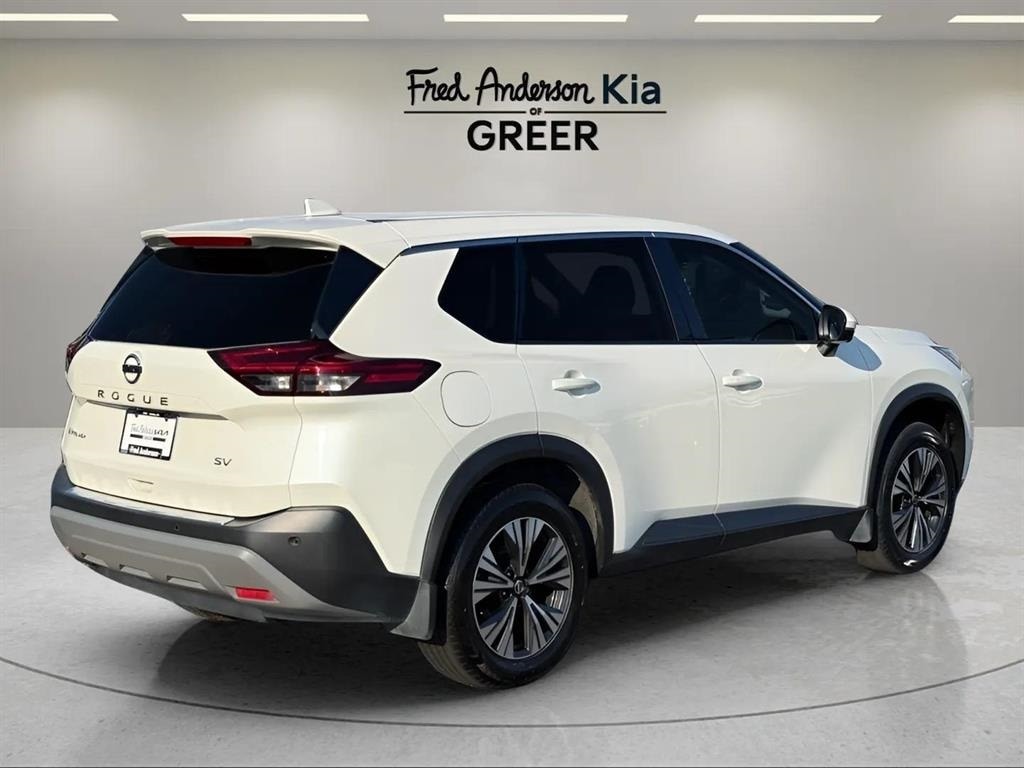2021 Nissan Rogue SV Pearl White Tricoat 18" Aluminum Alloy Wheels, 4-Wheel Disc Brakes, 5.604 Axle Ratio, 6 Speakers, ABS brakes, Air Conditioning, Alloy wheels, AM/FM Radio, AM/FM radio, Auto High-beam Headlights, Automatic temperature control, Black Splash Guards (Set of 4), Brake assist, Bumpers: body-color, Chrome Rear Bumper Protector, Cloth Seat Trim, Delay-off headlights, Driver door bin, Driver vanity mirror, Dual front impact airbags, Dual front side impact airbags, Electronic Stability Control, Emergency communication system: NissanConnect Services, First Aid Kit, Floor Mats w/1-Piece Cargo Area Protector, Four wheel independent suspension, Front anti-roll bar, Front Bucket Seats, Front Center Armrest, Front dual zone A/C, Front reading lights, Fully automatic headlights, Heated door mirrors, Illuminated entry, Knee airbag, Low tire pressure warning, NissanConnect featuring Apple CarPlay and Android Auto, Occupant sensing airbag, Outside temperature display, Overhead airbag, Overhead console, Panic alarm, Passenger door bin, Passenger vanity mirror, Power door mirrors, Power driver seat, Power steering, Power windows, Radio data system, Rear anti-roll bar, Rear Parking Sensors, Rear seat center armrest, Rear side impact airbag, Rear window defroster, Rear window wiper, Remote keyless entry, Security system, Speed control, Speed-Sensitive Wipers, Split folding rear seat, Spoiler, Steering wheel mounted audio controls, Tachometer, Telescoping steering wheel, Tilt steering wheel, Traction control, Trip computer, Turn signal indicator mirrors, Variably intermittent wipers.