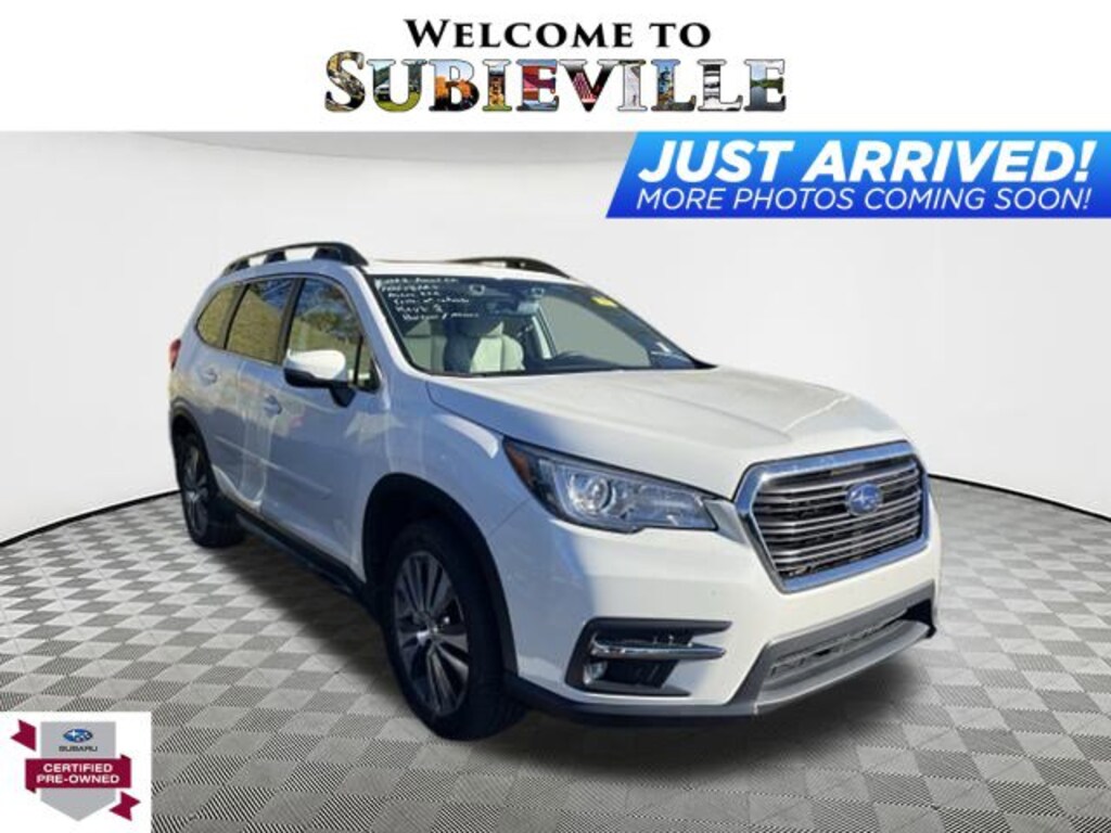 Subaru Certified Pre-Owned Certified, Auto High-beam Headlights, Auto-Dimming Exterior Mirror w/Approach Light, Auto-dimming Rear-View mirror, Dual Glass Panoramic Power Moonroof, Fully automatic headlights, Heated Front Bucket Seats, Memory seat, Perforated Leather-Trimmed Upholstery, Power driver seat, Power Liftgate, Radio: Subaru STARLINK 8.0" Multimedia Nav System, Reclining 3rd row seat, Remote keyless entry, STARLINK/Apple CarPlay/Android Auto, Steering wheel mounted audio controls, Technology Package, Trailer Hitch, Wheels: 20" x 7.5 J Dk Gray Alloy w/Machine Finish, 3rd row seats: bench, 4-Wheel Disc Brakes, 6 Speakers, ABS brakes, Aero Crossbar Set, Air Conditioning, Alloy wheels, AM/FM radio: SiriusXM, Automatic temperature control, Axle Ratio: 4.44, Brake assist, Bumpers: body-color, CD player, Compass, Crystal White Pearl Body Side Molding, Delay-off headlights, Driver door bin, Driver vanity mirror, Dual front impact airbags, Dual front side impact airbags, Electronic Stability Control, Emergency communication system: STARLINK Safety and Security (Subscription Required), Exterior Parking Camera Rear, Four wheel independent suspension, Front anti-roll bar, Front Bucket Seats, Front Center Armrest, Front dual zone A/C, Front fog lights, Front reading lights, Garage door transmitter: HomeLink, Heated door mirrors, Heated front seats, Heated steering wheel, Illuminated entry, Knee airbag, Low tire pressure warning, Occupant sensing airbag, Outside temperature display, Overhead airbag, Overhead console, Panic alarm, Passenger door bin, Passenger vanity mirror, Power door mirrors, Power passenger seat, Power steering, Power windows, Radio data system, Rear air conditioning, Rear anti-roll bar, Rear Bumper Cover, Rear reading lights, Rear seat center armrest, Rear window defroster, Rear window wiper, Security system, Speed control, Splash Guards, Split folding rear seat, Spoiler, Tachometer, Telescoping steering wheel, Tilt steering wheel, Traction control, Trip computer, Turn signal indicator mirrors, Variably intermittent wipers, Auto High-beam Headlights, Auto-Dimming Exterior Mirror w/Approach Light, Auto-dimming Rear-View mirror, Dual Glass Panoramic Power Moonroof, Fully automatic headlights, Heated Front Bucket Seats, Memory seat, Perforated Leather-Trimmed Upholstery, Power driver seat, Power Liftgate, Radio: Subaru STARLINK 8.0" Multimedia Nav System, Reclining 3rd row seat, Remote keyless entry, STARLINK/Apple CarPlay/Android Auto, Steering wheel mounted audio controls, Technology Package, Trailer Hitch, Wheels: 20" x 7.5 J Dk Gray Alloy w/Machine Finish.