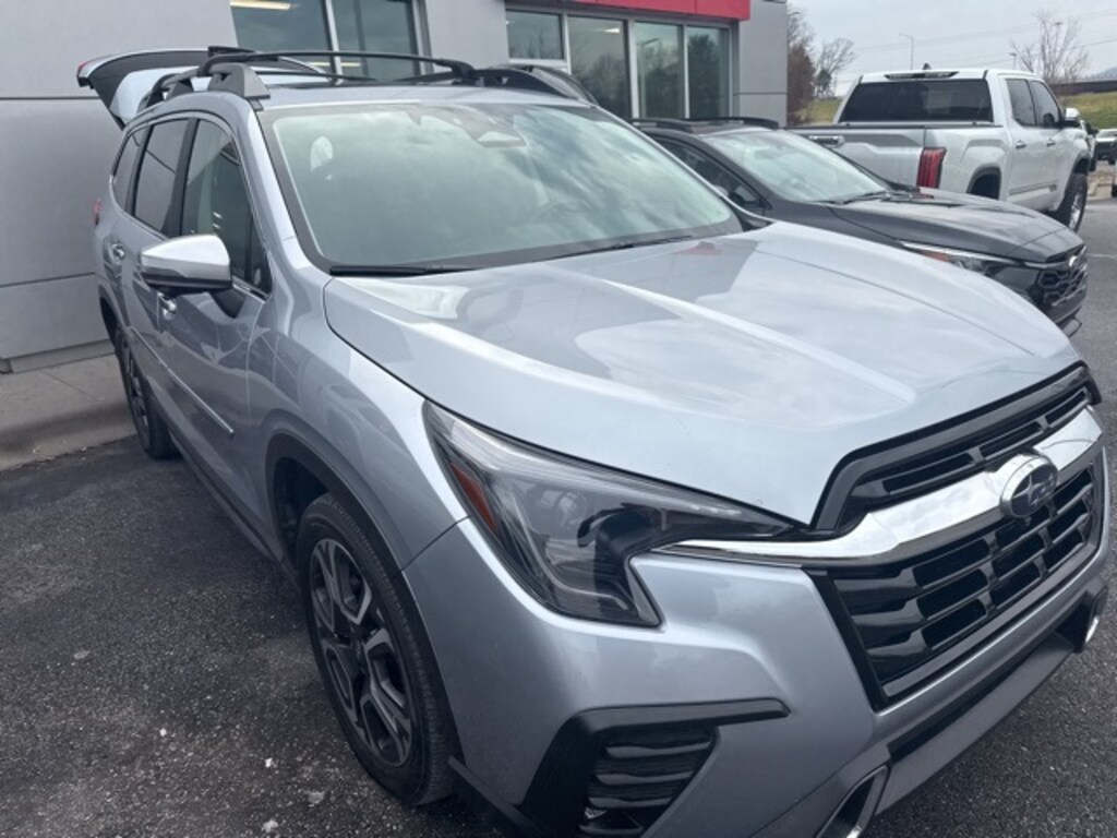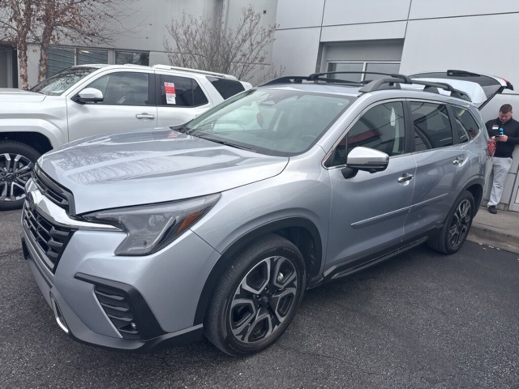 Recent Arrival! 2023 Subaru Ascent Touring Ice Silver Metallic 14 Speakers, 3rd row seats: bench, 4-Wheel Disc Brakes, ABS brakes, Aero Crossbar Set, Air Conditioning, All-Weather Floor Liners, Alloy wheels, AM/FM radio: SiriusXM, Auto High-beam Headlights, Auto-Dimming Exterior Mirror w/Approach Light, Auto-dimming Rear-View mirror, Automatic temperature control, Axle Ratio: 4.44, Brake assist, Bumpers: body-color, Compass, Delay-off headlights, Driver door bin, Driver vanity mirror, Dual front impact airbags, Dual front side impact airbags, Electronic Stability Control, Emergency communication system: STARLINK Safety and Security (Subscription Required), Four wheel independent suspension, Front anti-roll bar, Front Bucket Seats, Front Center Armrest, Front dual zone A/C, Front fog lights, Front reading lights, Fully automatic headlights, Garage door transmitter: HomeLink, harman/kardon® Speakers, Heated & Ventilated Front Bucket Seats, Heated door mirrors, Heated front seats, Heated rear seats, Heated steering wheel, HVAC memory, Illuminated entry, Knee airbag, Leather Shift Knob, Leather steering wheel, Low tire pressure warning, Memory seat, Navigation System, Occupant sensing airbag, Outside temperature display, Overhead airbag, Overhead console, Panic alarm, Passenger door bin, Passenger vanity mirror, Perforated Nappa Leather-Trimmed Upholstery, Power door mirrors, Power driver seat, Power Liftgate, Power moonroof, Power passenger seat, Power steering, Power windows, Radio data system, Radio: Subaru STARLINK 11.6" Multimedia Nav System, Rain sensing wipers, Rear air conditioning, Rear anti-roll bar, Rear Bumper Cover, Rear reading lights, Rear window defroster, Rear window wiper, Reclining 3rd row seat, Remote keyless entry, Security system, Speed control, Speed-sensing steering, Split folding rear seat, Spoiler, Standard Model, STARLINK/Apple CarPlay/Android Auto, Steering wheel mounted audio controls, Tachometer, Telescoping steering wheel, Tilt steering wheel, Traction control, Trip computer, Turn signal indicator mirrors, Variably intermittent wipers, Ventilated front seats, Wheels: 20" x 7.5 J Dk Gray Alloy w/Machine Finish, Windshield Sunshade.