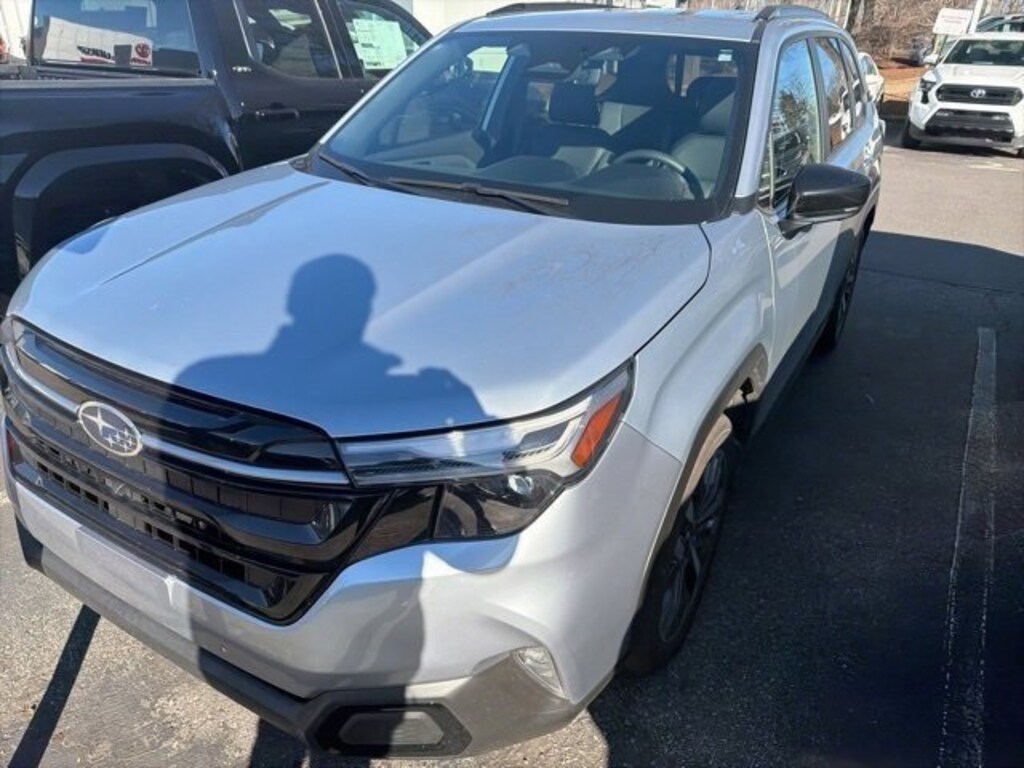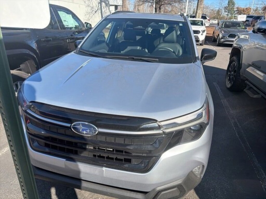 Recent Arrival! CARFAX One-Owner. Clean CARFAX. 2025 Subaru Forester Touring Ice Silver Metallic 11 Speakers, 4-Wheel Disc Brakes, ABS brakes, Air Conditioning, All-Weather Floor Liners, Alloy wheels, AM/FM radio: SiriusXM with 360L, Anti-whiplash front head restraints, Auto High-beam Headlights, Auto-Dimming Exterior Mirror w/Approach Light, Automatic temperature control, Brake assist, Bumpers: body-color, Cargo Tray, Driver door bin, Driver vanity mirror, Dual front impact airbags, Dual front side impact airbags, Electronic Stability Control, Emergency communication system: MySubaru Safety (3-year free trial), Exterior Parking Camera Rear, Four wheel independent suspension, Front anti-roll bar, Front Bucket Seats, Front Center Armrest, Front dual zone A/C, Front fog lights, Front reading lights, Fully automatic headlights, harman/kardon® Speakers, Heated & Ventilated Front Bucket Seats, Heated door mirrors, Heated front seats, Heated rear seats, Heated steering wheel, HVAC memory, Illuminated entry, Knee airbag, Leather steering wheel, LED Upgrade, Low tire pressure warning, Memory seat, Navigation System, Occupant sensing airbag, Outside temperature display, Overhead airbag, Overhead console, Panic alarm, Passenger door bin, Passenger vanity mirror, Perforated Leather-Trimmed Upholstery, Popular Package - Touring, Power door mirrors, Power driver seat, Power Liftgate, Power moonroof: Panoramic, Power passenger seat, Power steering, Power windows, Radio data system, Radio: Subaru 11.6" Multimedia Navigation System, Rear anti-roll bar, Rear Bumper Cover, Rear seat center armrest, Rear Seatback Protector, Rear window defroster, Rear window wiper, Remote keyless entry, Security system, Speed control, Speed-sensing steering, Splash Guards, Split folding rear seat, Spoiler, Standard Model, Steering wheel mounted audio controls, Tachometer, Telescoping steering wheel, Tilt steering wheel, Traction control, Trip computer, Turn signal indicator mirrors, Variably intermittent wipers, Ventilated front seats, Wheels: 19" x 7.5 J Dark Gray Aluminum-Alloy.