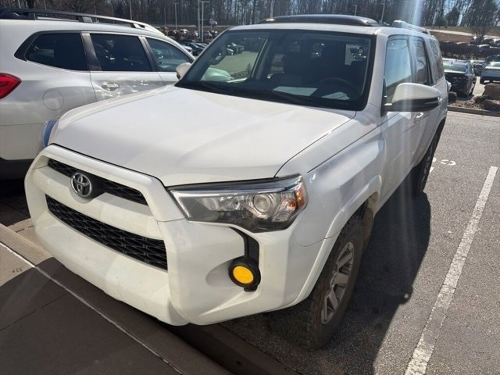 Recent Arrival! CARFAX One-Owner. Clean CARFAX. 2018 Toyota 4Runner Super White 3.727 Axle Ratio, 4-Wheel Disc Brakes, ABS brakes, Air Conditioning, Alloy wheels, AM/FM radio: SiriusXM, Anti-whiplash front head restraints, Brake assist, Bumpers: body-color, CD player, Driver door bin, Driver vanity mirror, Dual front impact airbags, Dual front side impact airbags, Electronic Stability Control, Emergency communication system: Safety Connect, Exterior Parking Camera Rear, Front anti-roll bar, Front Bucket Seats, Front Center Armrest, Front fog lights, Front reading lights, Front wheel independent suspension, Heated door mirrors, Illuminated entry, Knee airbag, Leather Shift Knob, Low tire pressure warning, Occupant sensing airbag, Outside temperature display, Overhead airbag, Overhead console, Panic alarm, Passenger door bin, Passenger vanity mirror, Power door mirrors, Power driver seat, Power steering, Power windows, Rear anti-roll bar, Rear seat center armrest, Rear window defroster, Rear window wiper, Remote keyless entry, Roof rack: rails only, Security system, Speed control, Speed-sensing steering, Split folding rear seat, Spoiler, Steering wheel mounted audio controls, Tachometer, Telescoping steering wheel, Tilt steering wheel, Traction control, Trip computer, Variably intermittent wipers.
