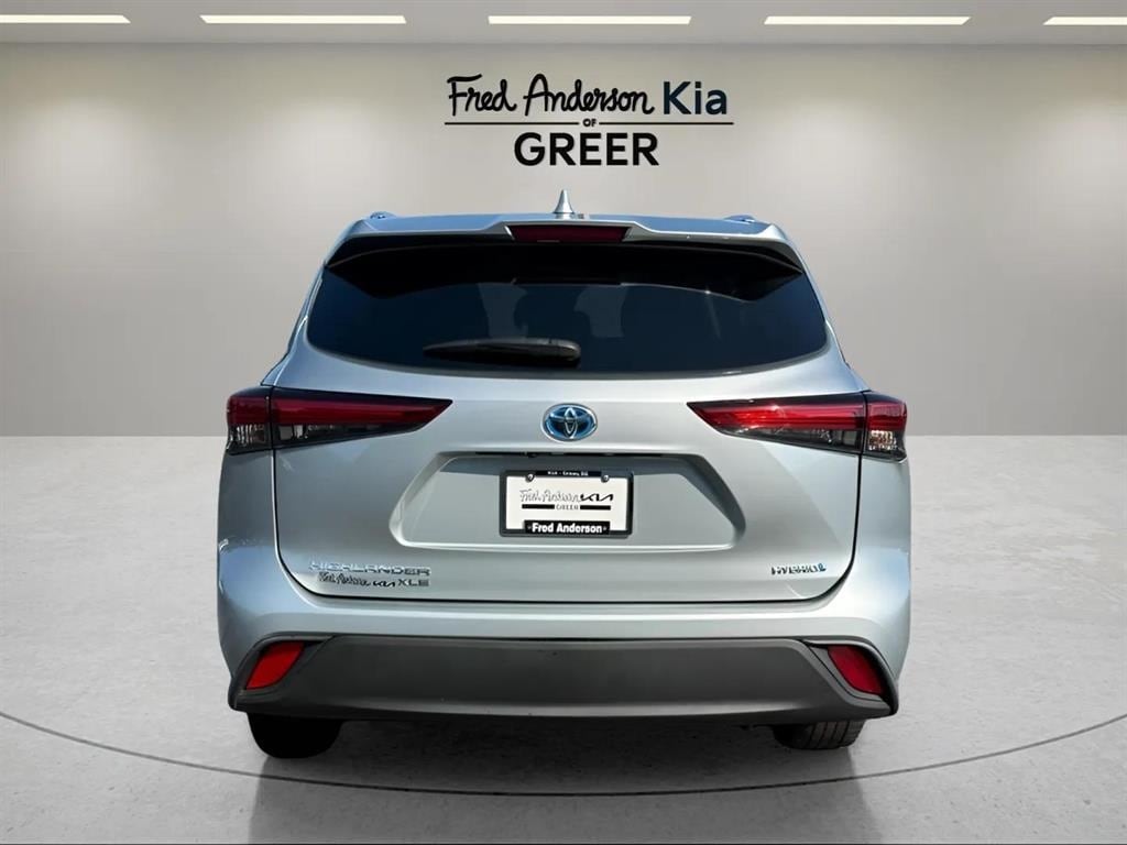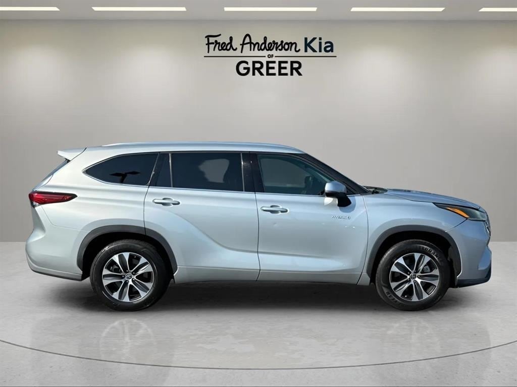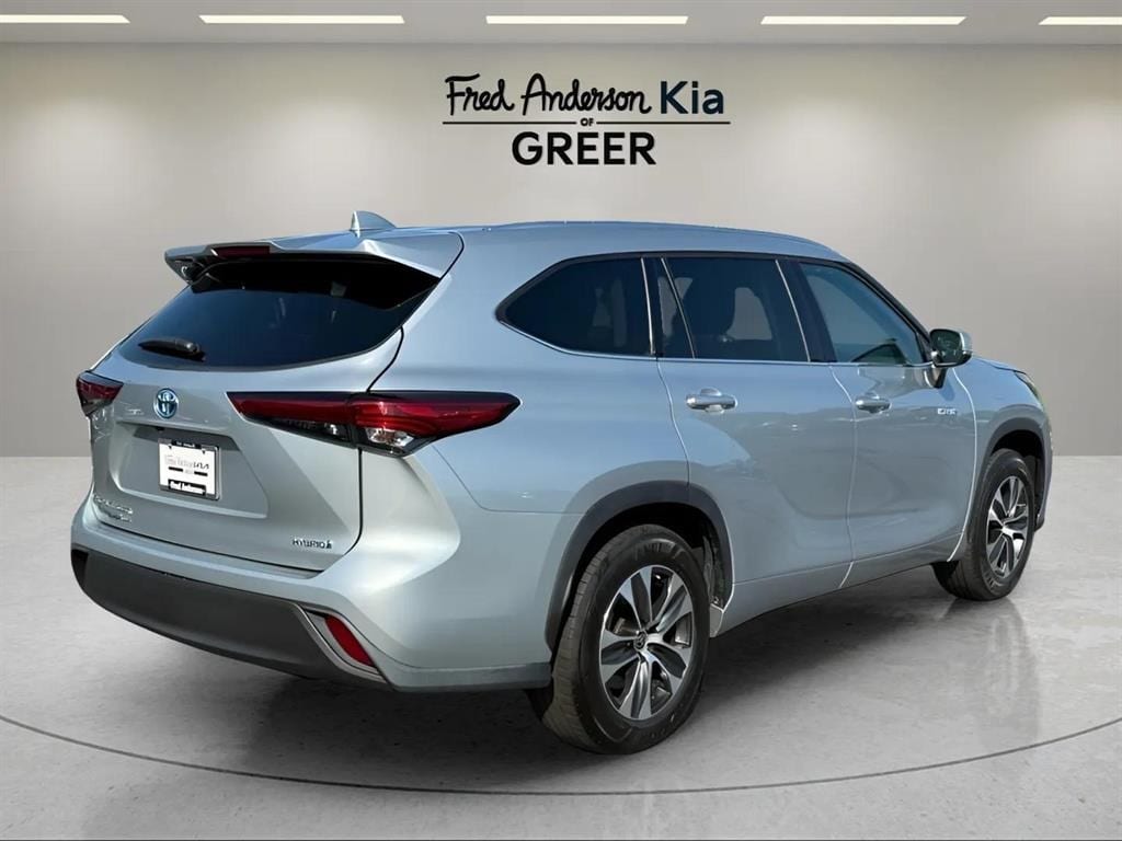 CARFAX One-Owner. 2021 Toyota Highlander Hybrid XLE Celestial Silver Metallic 3rd row seats: split-bench, 4-Wheel Disc Brakes, 6 Speakers, ABS brakes, Air Conditioning, Alloy wheels, AM/FM radio: SiriusXM, Apple CarPlay/Android Auto, Auto High-beam Headlights, Auto-dimming Rear-View mirror, Automatic temperature control, Axle Ratio TBD, Brake assist, Bumpers: body-color, Delay-off headlights, Driver door bin, Driver vanity mirror, Dual front impact airbags, Dual front side impact airbags, Electronic Stability Control, Emergency communication system: Safety Connect with 1-year trial, Exterior Parking Camera Rear, Four wheel independent suspension, Front anti-roll bar, Front Bucket Seats, Front Center Armrest, Front dual zone A/C, Front fog lights, Front reading lights, Fully automatic headlights, Garage door transmitter: HomeLink, Heated door mirrors, Heated Front Bucket Seats, Heated front seats, Illuminated entry, Knee airbag, Leather Shift Knob, Low tire pressure warning, Occupant sensing airbag, Outside temperature display, Overhead airbag, Overhead console, Panic alarm, Passenger door bin, Passenger vanity mirror, Power door mirrors, Power driver seat, Power Liftgate, Power moonroof, Power passenger seat, Power steering, Power windows, Radio: Audio Plus (T1 Hi), Rear air conditioning, Rear anti-roll bar, Rear reading lights, Rear window defroster, Rear window wiper, Reclining 3rd row seat, Remote keyless entry, Roof rack: rails only, Security system, SofTex Seat Trim, Speed control, Speed-sensing steering, Split folding rear seat, Spoiler, Steering wheel mounted audio controls, Telescoping steering wheel, Tilt steering wheel, Traction control, Trip computer, Turn signal indicator mirrors, Variably intermittent wipers, Wheels: 18" Machined-Finish Alloy.