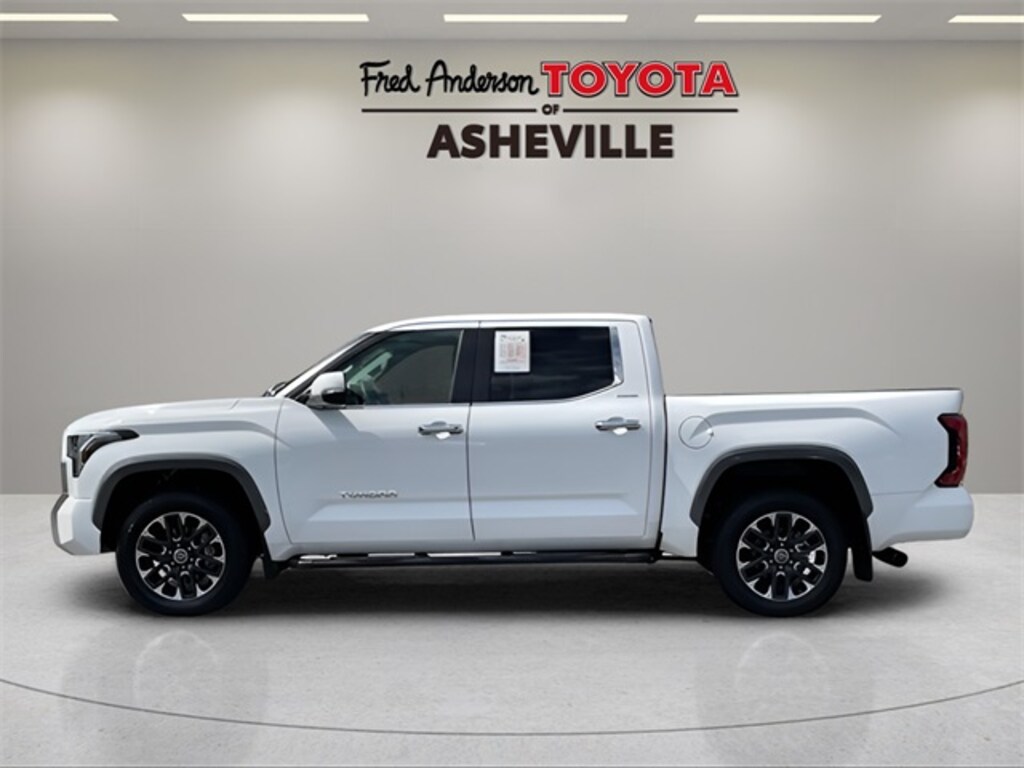 CARFAX One-Owner. 2024 Toyota Tundra Limited White 20" Alloy Wheels, 3.31 Axle Ratio, 4-Wheel Disc Brakes, 8-Way Pwr Adjustable Heated/Ventilated Front Seats, 9 Speakers, ABS brakes, Air Conditioning, Alloy wheels, AM/FM radio: SiriusXM, Apple CarPlay/Android Auto, Auto High-beam Headlights, Auto-dimming door mirrors, Auto-dimming Rear-View mirror, Automatic temperature control, Brake assist, Bumpers: body-color, Delay-off headlights, Driver door bin, Driver vanity mirror, Dual front impact airbags, Dual front side impact airbags, Electronic Stability Control, Emergency communication system: Safety Connect (10-year trial), Exterior Parking Camera Rear, Front anti-roll bar, Front Bucket Seats, Front Center Armrest, Front dual zone A/C, Front fog lights, Front reading lights, Front wheel independent suspension, Fully automatic headlights, Garage door transmitter: HomeLink, Heated door mirrors, Heated front seats, Illuminated entry, Knee airbag, Leather Shift Knob, Low tire pressure warning, Memory seat, Navigation System, Occupant sensing airbag, Outside temperature display, Overhead airbag, Overhead console, Panic alarm, Passenger door bin, Passenger vanity mirror, Power door mirrors, Power driver seat, Power passenger seat, Power steering, Power windows, Radio data system, Radio: Audio Multimedia System, Rear reading lights, Rear seat center armrest, Rear step bumper, Rear window defroster, Remote keyless entry, Safety Connect, Security system, SofTex Seat Trim, Speed control, Speed-sensing steering, Split folding rear seat, Steering wheel mounted audio controls, Tachometer, Telescoping steering wheel, Tilt steering wheel, Traction control, Trip computer, Turn signal indicator mirrors, Variably intermittent wipers, Ventilated front seats, Voltmeter.