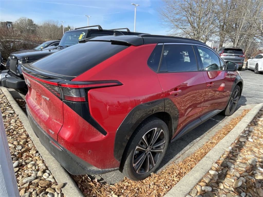 Recent Arrival! CARFAX One-Owner. 2024 Toyota bZ4X Limited Supersonic Red w/Black Roof ABS brakes, Alloy wheels, Electronic Stability Control, Front dual zone A/C, Heated & Ventilated Front Seats, Heated door mirrors, Heated front seats, Illuminated entry, Low tire pressure warning, Power Liftgate, Remote keyless entry, Traction control.